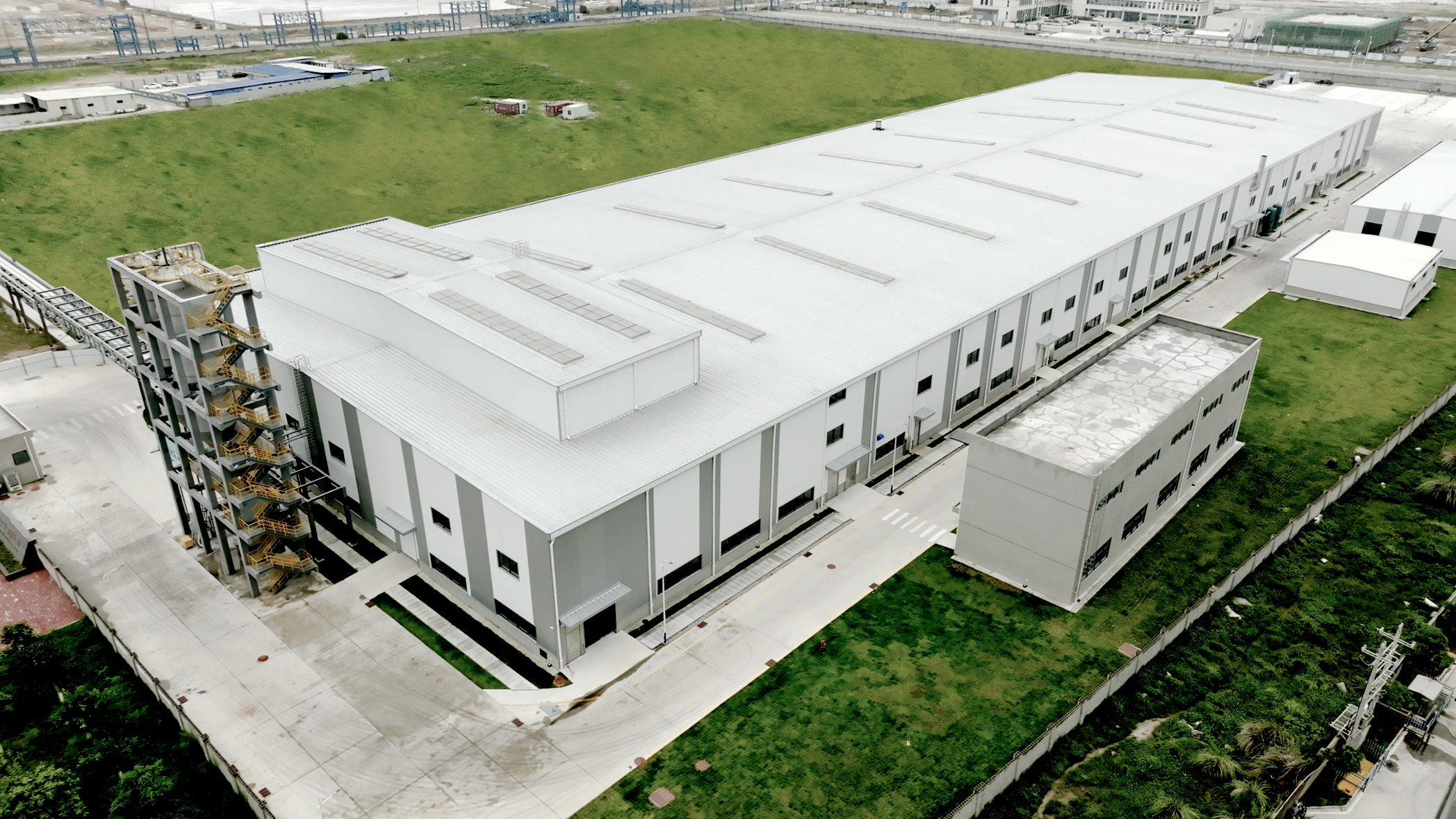 湄洲湾南岸,一栋栋灰白色建筑星罗棋布,伟德国际victor1946新材一体化基地就坐落于此。其中格外引人瞩目的一栋建筑,就是刚刚建成的福建长塑首座厂房。