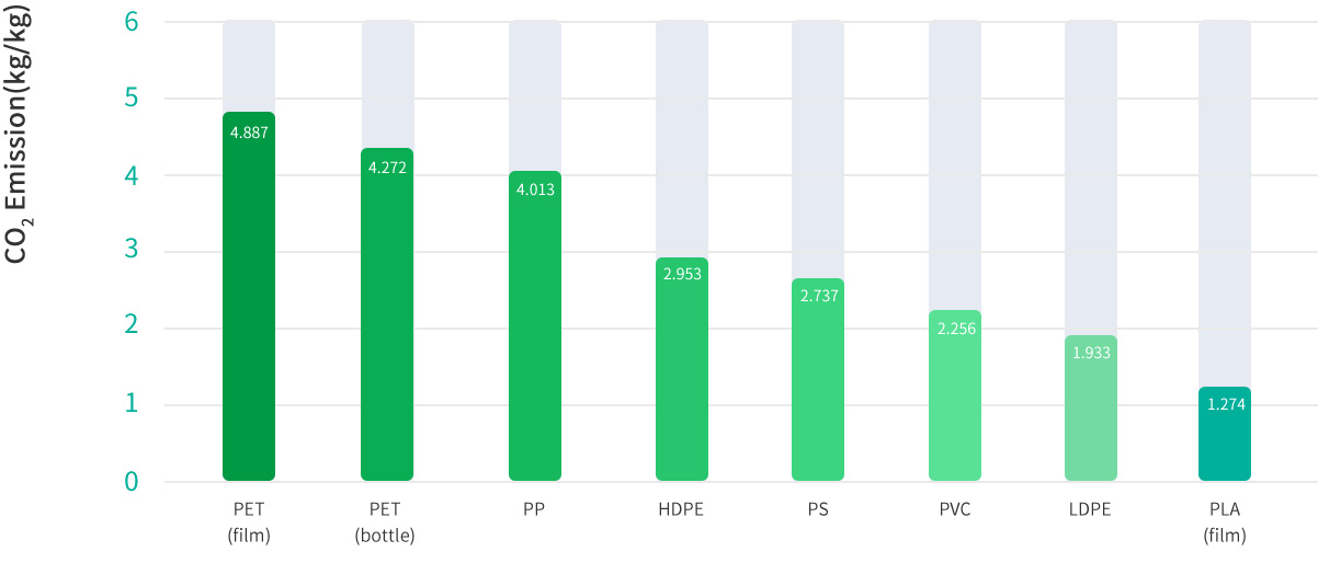 PLA与其他塑料碳足迹对比